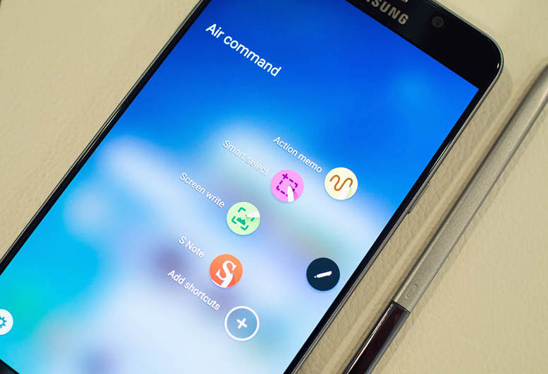 Rispetto al Galaxy Note 4 del 2014, il Note 5 presenta alcuni assi nella manica. Innanzi tutto, ha la nuova funzione “Air Command”, un’icona galleggiante che svela un menu circolare con le applicazioni più utilizzate, vale a dire l’app S-Note, il browser e la galleria fotografica. L’Air Command si può disattivare, dal menu Impostazioni, oppure si possono cambiare le tre app a scelta.