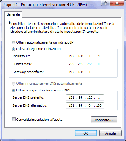 Homemodificare indirizzo ip windows- protocollo rete