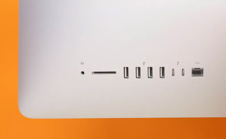 Notiamo la mancanza di una porta in uscita per i video. iMac da 27 pollici può comunque supportare fino a due monitor in 4K esterni con frequenze di aggiornamento di 60 Hertz ma è necessario acquistare degli adattatori per collegarli.