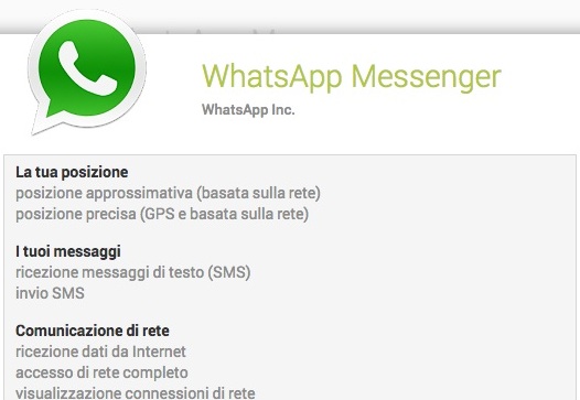 TELEFONATE – WhatsApp richiede il permesso di chiamare direttamente un numero di telefono. La richiesta è giustificata, perché dall’applicazione si può inoltrare una chiamata ai propri contatti, appoggiandosi però al proprio gestore telefonico, così come per gli SMS. L’app serve in pratica per lanciare la chiamata, che poi passerà attraverso canali tradizionali.