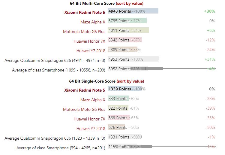 Secondo Geekbench, Xiaomi Redmi Note 5 si posiziona assai bene nella comparazione con i suoi più diretti concorrenti. Nell’analisi delle prestazioni del processore con tutti i core collegati, è saldamente sopra a Moto G6 Plus, a Honor 7 e a Huawei Y7, stessa cosa nelle performance del singolo core.