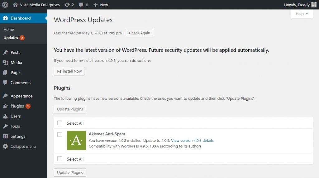 In secondo luogo, controllare se c’è una nuova versione di WordPress: