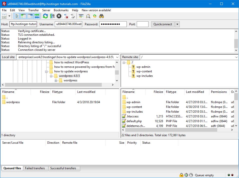 Con questi dettagli in mano, cerchiamo di aggiornare WordPress manualmente.
