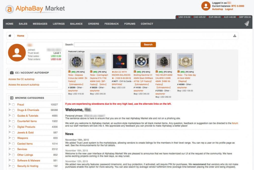 Ancora più grosso e potente fu il suo successore: Alphabay. Il suo fondatore, Alexandre Cazes, riuscì a fondare uno sterminato impero di e-commerce illegale. Milioni e milioni di prodotti vennero venduti in pochi mesi e Cazes diventò in pochissimo tempo veramente straricco. La polizia lo inseguì per mesi e riuscì a trovare solo pochi dati su di lui: la sua mail personale [email protected] e il suo nome virtuale, Alpha02.