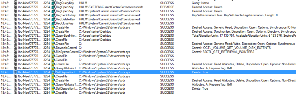 Esempio di azioni eseguite da HermeticWiper, visto in ProcessMonitor