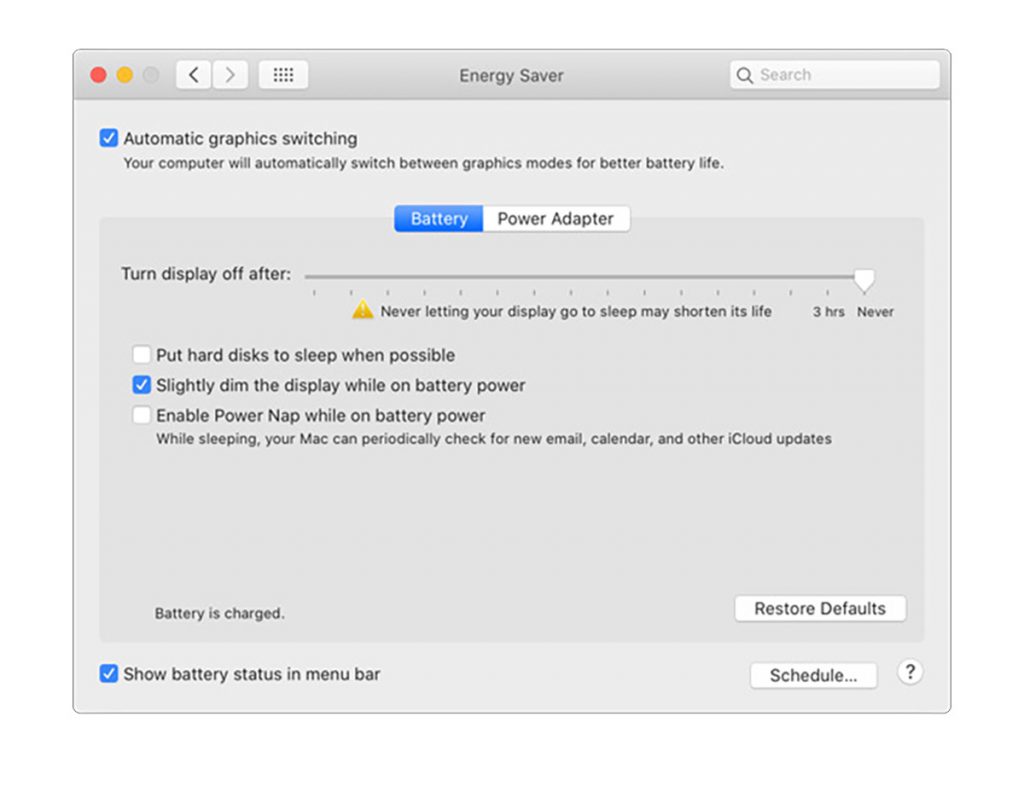 Prima dell’aggiornamento, il pannello di controllo di Energy Saver sembrava avere diverse incarnazioni di macOS.