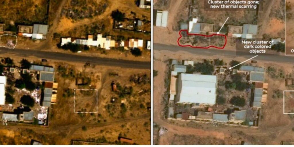 L’assenza di qualsiasi traccia della loro presenza indica la possibilità di uccisioni di massa, deportazioni forzate, morti per fame e occultamento sistematico dei corpi. El Fasher, che prima della guerra contava un milione e mezzo di abitanti, mostra oggi un vuoto demografico che richiama le pagine più oscure dei conflitti africani del secolo passato. È un’assenza che pesa più dei rapporti ufficiali e che si manifesta nello scarto visivo tra ciò che la città era e ciò che appare oggi.